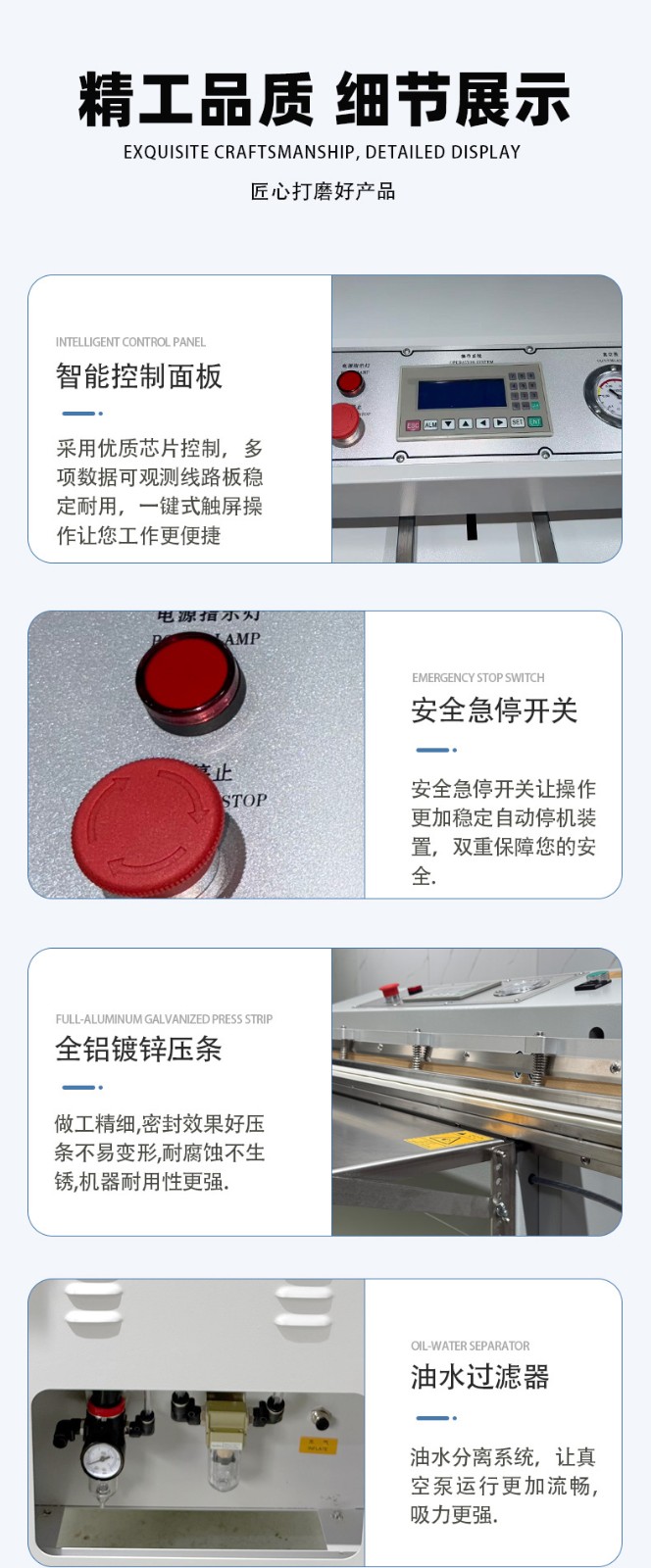 - 外抽真空包裝機的熱封條通常位于抽氣嘴下方或封口機構處,外部有金屬防護蓋(防止誤觸高溫)。