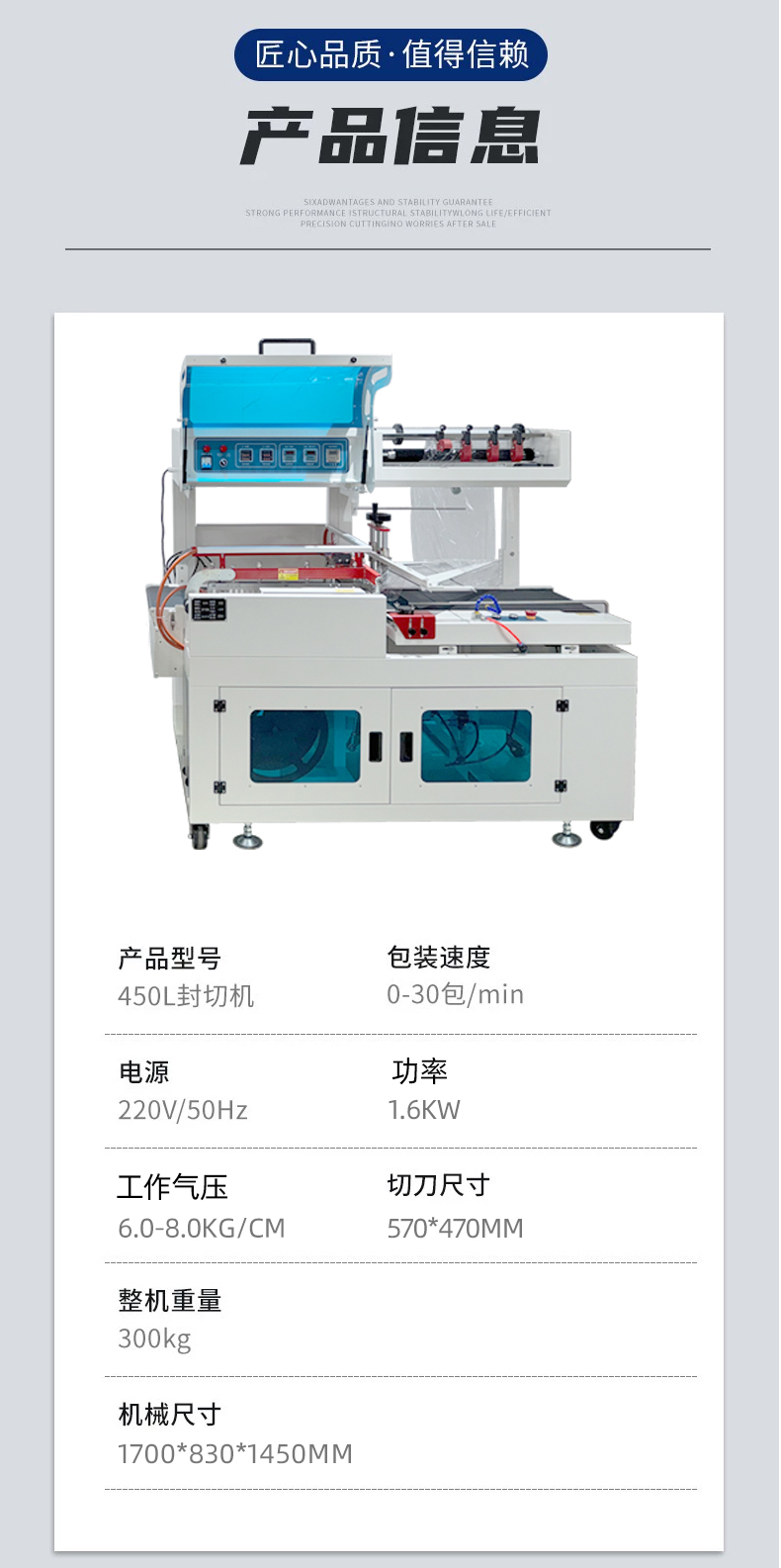 - 封切精準(zhǔn):封切刀采用特種合金材料噴涂特氟龍?zhí)幚?,封切不粘膜,封口牢固,且封切線(xiàn)細(xì)。部分高端機(jī)型還具備視覺(jué) + 機(jī)械雙重定位系統(tǒng),切割精度可達(dá) 0.1mm 以?xún)?nèi)。