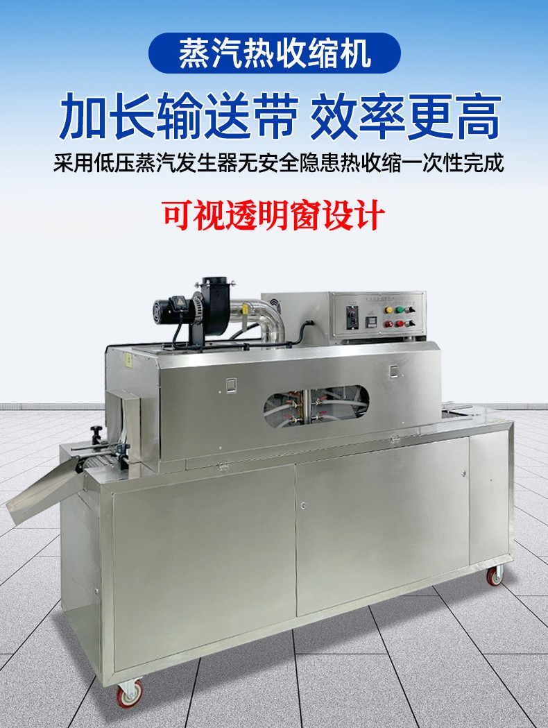 減少設(shè)備占用空間,適配多場(chǎng)景布局需求傳統(tǒng)蒸汽收縮包裝方案中,獨(dú)立蒸汽發(fā)生器體積較大,需與收縮機(jī)分開放置,還需預(yù)留管道連接的空間,整體占地面積大,對(duì)廠房面積較小的中小企業(yè)或生產(chǎn)線布局緊湊的場(chǎng)景極不友好。而蒸汽收縮一體機(jī)通過(guò)結(jié)構(gòu)優(yōu)化,將蒸汽發(fā)生模塊內(nèi)嵌于設(shè)備主機(jī)框架內(nèi),采用垂直分層或側(cè)置內(nèi)嵌的緊湊設(shè)計(jì),整體占地面積相比 “分體式設(shè)備組合” 減少 30%-50%。這種集成化設(shè)計(jì)不僅能輕松適配車間狹窄區(qū)域、流水線嵌入式工位,還可靈活移動(dòng)至臨時(shí)包裝作業(yè)區(qū),無(wú)論是固定生產(chǎn)線還是臨時(shí)加工點(diǎn),都能高效利用有限空間。