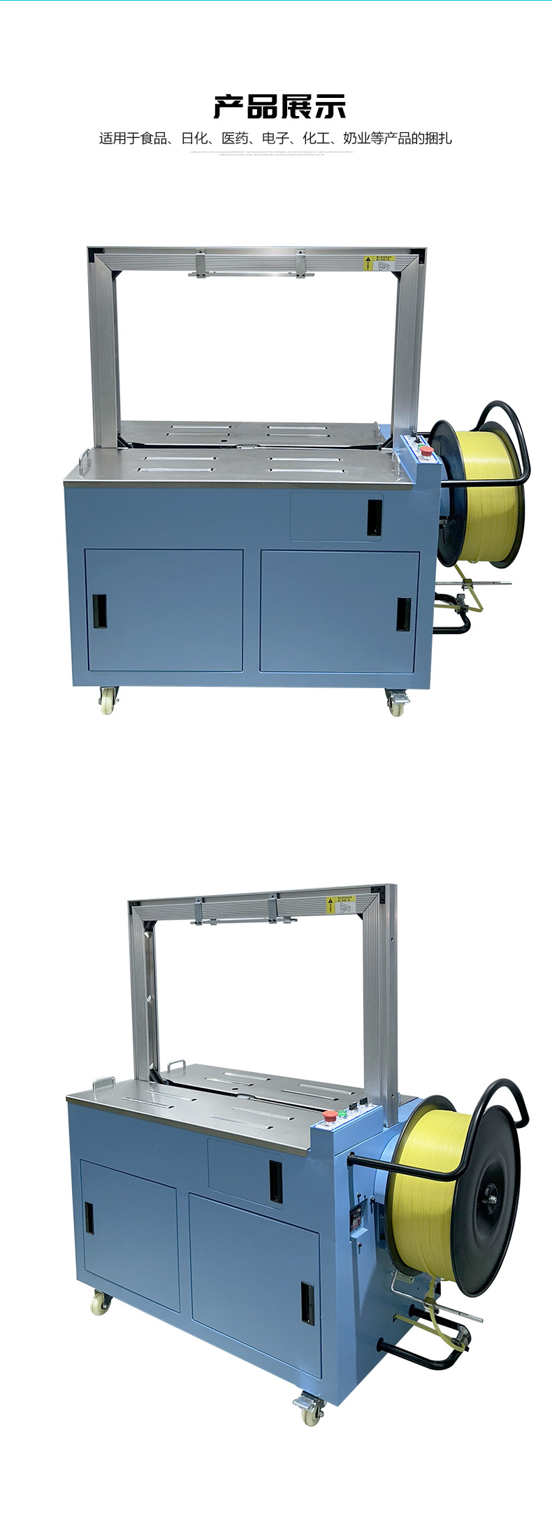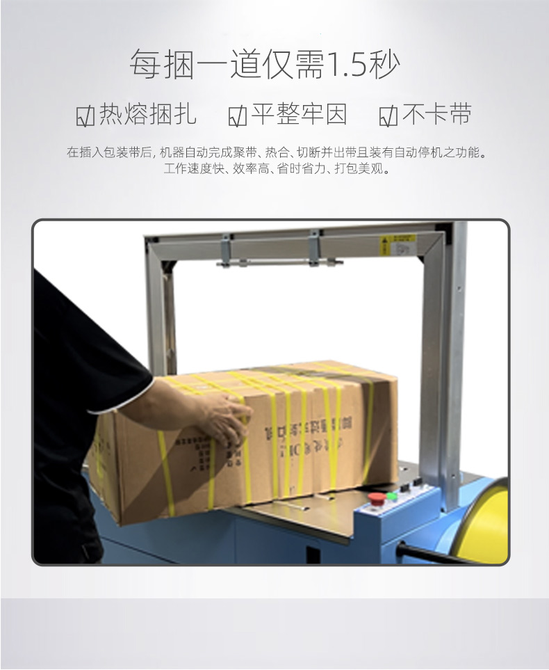 - 半自動打包機:效率相對較低,因為人工放置打包帶的過程會占用一定時間,且在連續(xù)打包時,人工操作的速度有限,更適合于打包量較小、對打包速度要求不高的場合,如小型企業(yè)、商鋪或家庭使用。