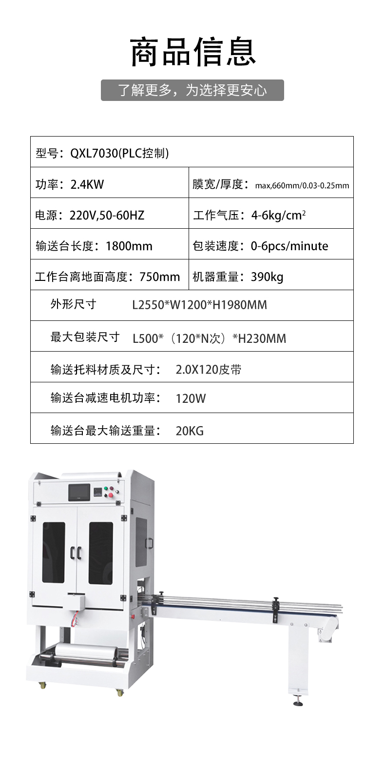 - 高速套膜:具有較高的套膜速度,每分鐘可以完成多件產(chǎn)品的套膜,極大地提高了包裝作業(yè)的速度。相比傳統(tǒng)的手工套膜或半自動(dòng)套膜設(shè)備,其效率提升顯著,能夠滿足大規(guī)模生產(chǎn)的需求。