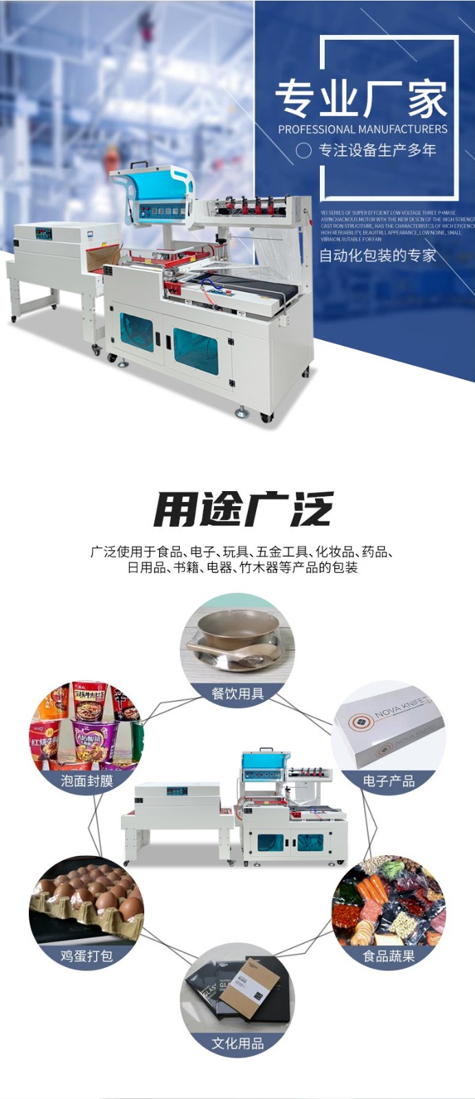 全自動 L 型封切熱收縮包裝機是一款集 “封切套膜” 與 “熱收縮定型” 于一體的自動化包裝設備,因封切機構呈 “L” 形而得名,廣泛應用于食品、醫(yī)藥、電子、日化等行業(yè),核心優(yōu)勢是包裝效率高、密封性好、外觀規(guī)整,能快速實現(xiàn)產(chǎn)品的單件或集合包裝,尤其適配規(guī)則形狀(如長方體、圓柱體)及中小型尺寸產(chǎn)品。下面從核心工作原理、關鍵結構組成、核心優(yōu)勢、適用場景、選型與操作注意事項五個維度,全面介紹該設備: