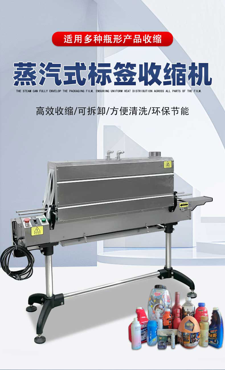 蒸汽收縮機通過將水加熱產(chǎn)生蒸汽,蒸汽在一定壓力下噴射到覆蓋在被包裝物品上的收縮膜上。收縮膜受熱后迅速收縮,緊緊包裹住物品,達到固定、保護物品以及美化包裝的目的。