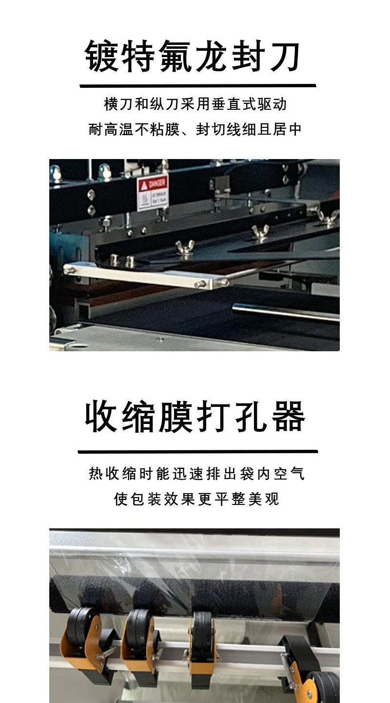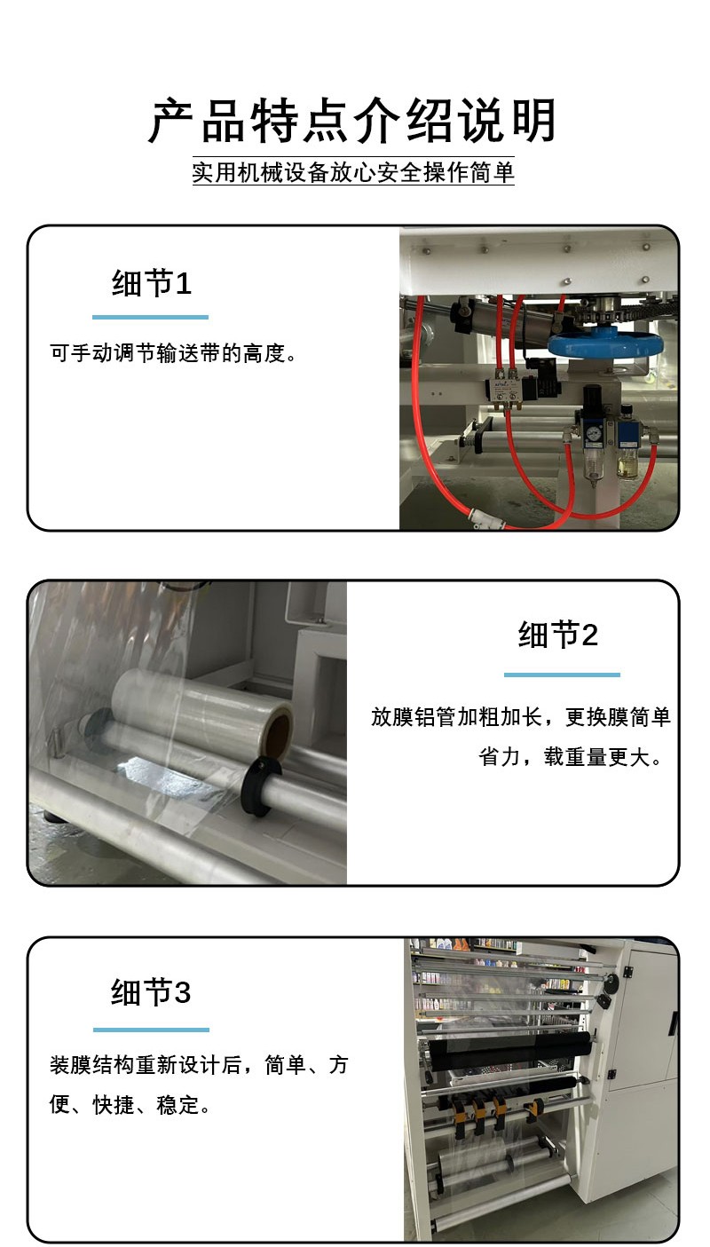 - 自動化程度高:從薄膜輸送、封切到收縮包裝,整個過程全部自動化完成,減少了人工干預(yù),提高了包裝效率。操作人員只需將產(chǎn)品放置在輸送帶上,設(shè)備就可以自動進行包裝,并且可以通過控制系統(tǒng)預(yù)設(shè)包裝參數(shù),實現(xiàn)批量生產(chǎn)。