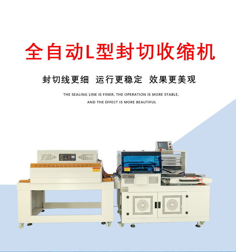 - 封切原理:全自動 L 型封切收縮機的封切部分主要是通過加熱封刀來實現(xiàn)。當(dāng)產(chǎn)品通過輸送帶被送至封切區(qū)域時,包裝薄膜會從薄膜卷筒被引出并覆蓋產(chǎn)品。封刀在加熱到一定溫度后,在壓力作用下將薄膜的兩側(cè)和底部邊緣進行密封,形成一個 L 型的封口。這個過程中,封刀的溫度和壓力是根據(jù)薄膜的材質(zhì)和厚度來精確控制的,以確保封口牢固且平整。例如,對于 POF 薄膜,封切溫度一般在 160 - 200℃之間,而 PVC 薄膜則可能需要 180 - 220℃的溫度。